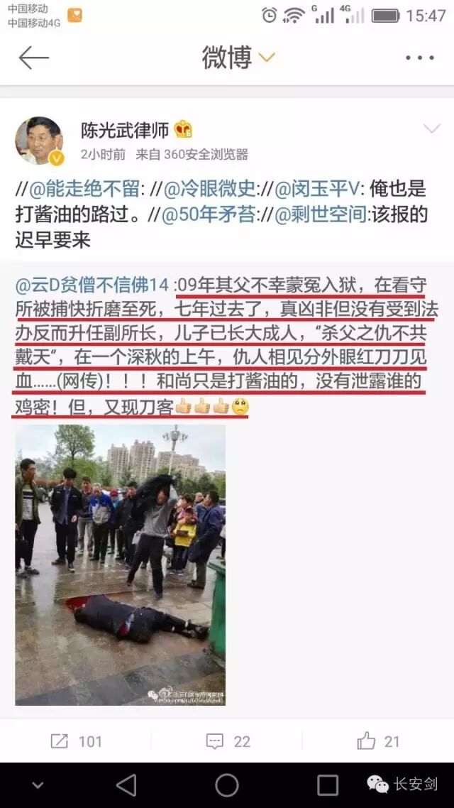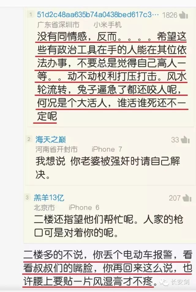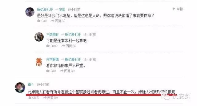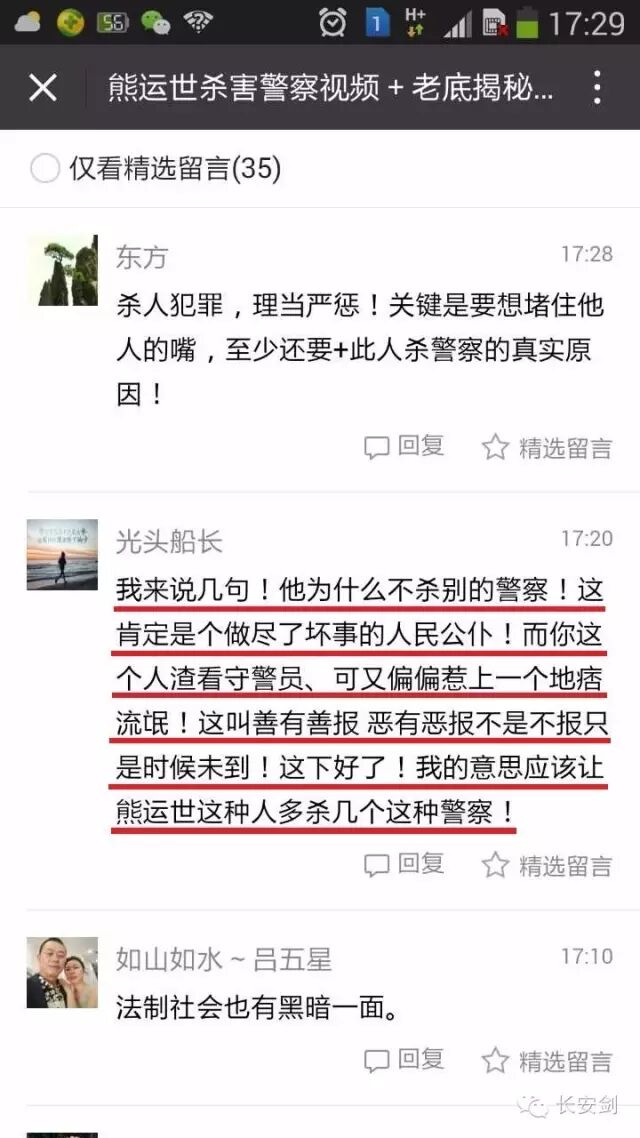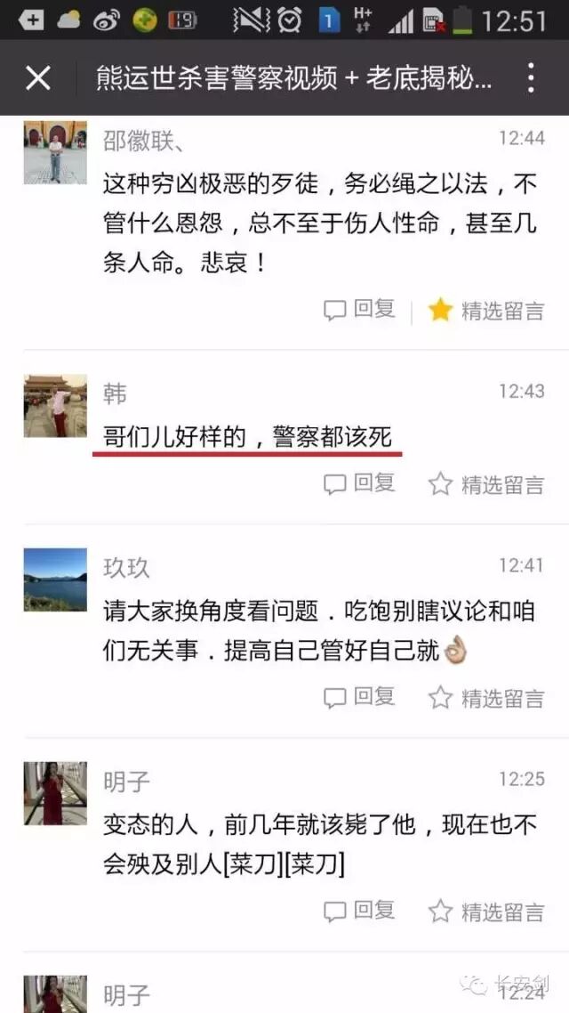 脱下警服,他是你,是我,是一个人活生生的人。当他被凶手残酷杀死,你围观,你拍手,你叫好,你乱喷;你不近人情,不讲人话,为杀人者开脱,让无辜者蒙冤!你怎能连一点怜悯之心、一点人性都没有?你不会想到,当一个又一个警察倒下后,谁来保护你的安全?你的父母,你的孩子,包括你自己,都有可能成为你的冷酷无情的受害者! 长安君收笔时,收到这则大快人心的消息:杀人凶手熊运世已在江西新建落网。人在做,天在看!惟愿逝者安息。杀人者,必将受到法律的严惩!语言施暴者:你是不是还要做“无罪辩护”?
